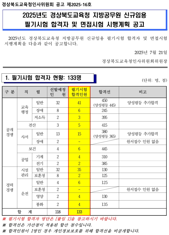 2025³âµµ °æ»óºÏµµ±³À°Ã» Áö¹æ°ø¹«¿ø Çʱâ½ÃÇè Çհݼ±