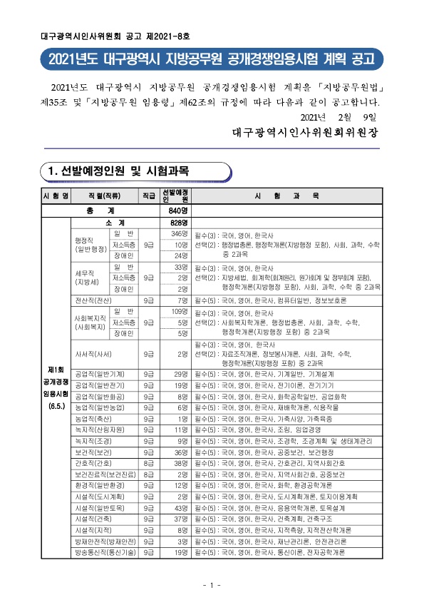 2021 ´ë±¸½Ã Áö¹æ°ø¹«¿ø °ø°³°æÀïÀÓ¿ë½ÃÇè °èȹ °ø°í