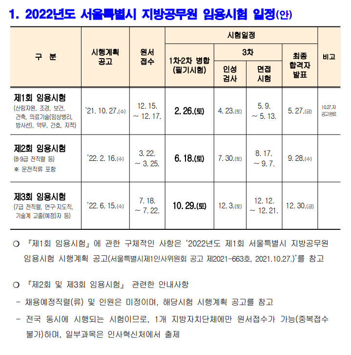 2022 ¼¿ï½Ã Áö¹æ°ø¹«¿ø ÀÓ¿ë½ÃÇè °ü·Ã »çÀü¾È³»(ÀÏÁ¤(¾È), ´Þ¶óÁö´Â ½ÃÇèÁ¦µµ)
