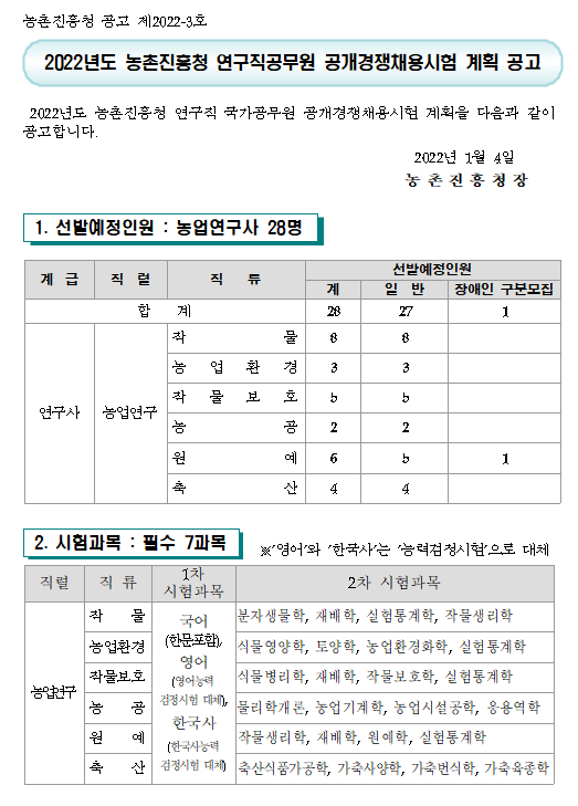 2022 ³óÃÌÁøÈïû ¿¬±¸Á÷°ø¹«¿ø °ø°³°æÀïä¿ë½ÃÇè °èȹ °ø°í