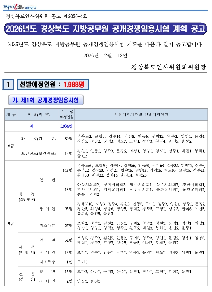 [°ø°í¹®]2026³âµµ_°æ»óºÏµµ_Áö¹æ°ø¹«¿ø_°ø°³°æÀïÀÓ¿ë½ÃÇè_°èȹ_°ø°í.pdf (392.0K) [0] DATE : 2026-02-19 11:55:44