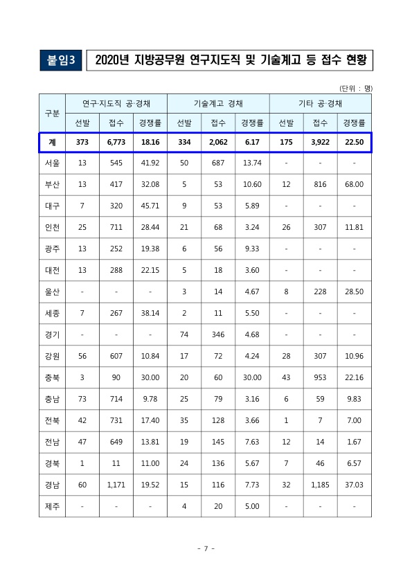 2020 °¢ ½Ã.µµ Áö¹æ°ø¹«¿ø 7±Þ °øÃ¤½ÃÇè °æÀï·ü