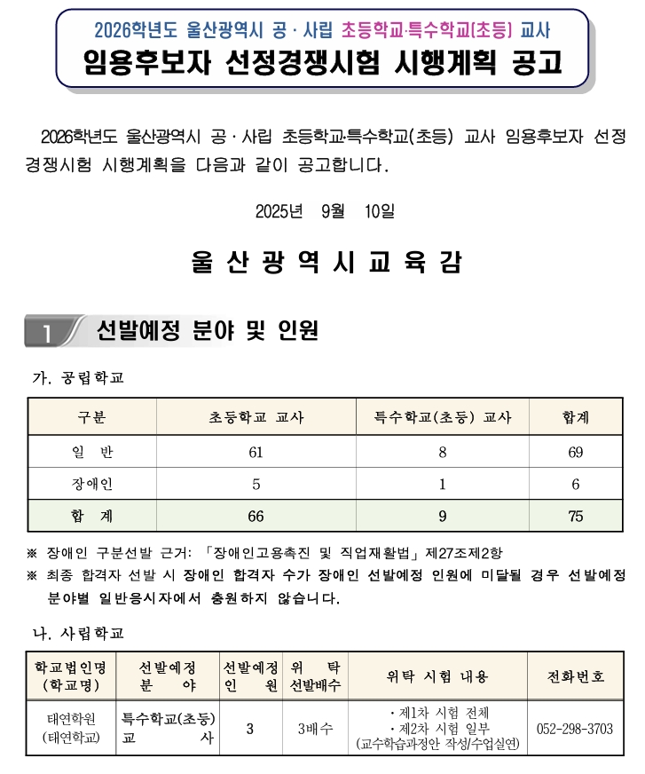 [°ø°í¹®]2026Çг⵵_¿ï»ê_°ø¡¤»ç¸³_ÃʵîÇб³¡¤Æ¯¼öÇб³_Ãʵî__±³»ç_½Å±ÔÀÓ¿ë½ÃÇè_½ÃÇà°èȹ_°ø°í.pdf (1.2M)