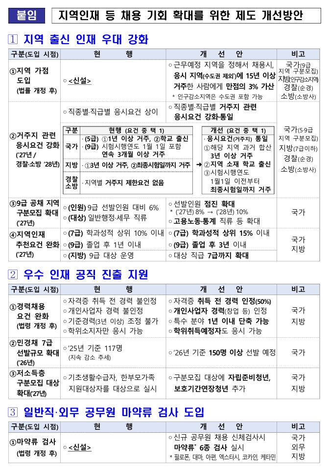 ¾Æ¿ï·¯, ÇöÀç 9±Þ ´ë»ó¸¸ ¿î¿µÇÏ´ø Áö¹æ°ø¹«¿ø Áö¿ªÀÎÀç Ãßõä¿ëÁ¦ ´ë»ó Á÷±Þµµ ÇöÇà 9±Þ¿¡¼ 7±Þ±îÁö È®´ëÇÏ´Â ¹æ¾ÈÀ» ÇÔ²² ÃßÁøÇÑ´Ù.