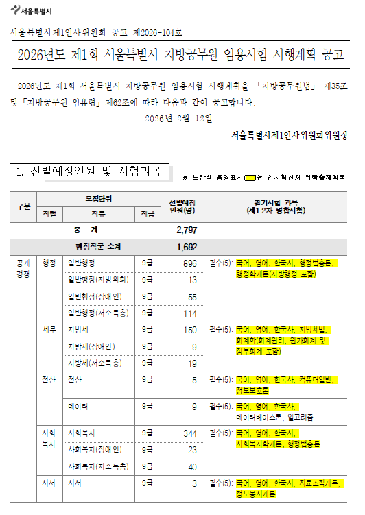 2026³âµµ_Á¦1ȸ_¼­¿ïƯº°½Ã_Áö¹æ°ø¹«¿ø_ÀÓ¿ë½ÃÇè_½ÃÇà°èȹ_°ø°í.hwp (150.0K) [0] DATE : 2026-02-19 12:00:17