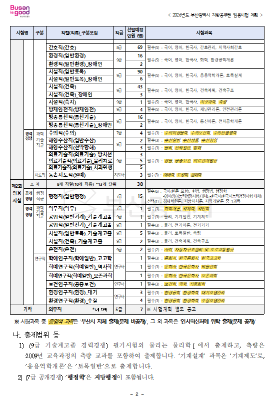 2026³âµµ Á¦1ȸ¡¤Á¦2ȸ ºÎ»ê±¤¿ª½Ã Áö¹æ°ø¹«¿ø ÀÓ¿ë½ÃÇè °èȹÀ» ºÙÀÓ°ú °°ÀÌ °ø°íÇÕ´Ï´Ù.