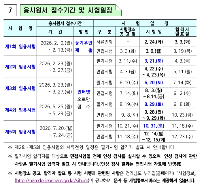 2026³âµµ Á¦1~5ȸ Àü¶ó³²µµ Áö¹æ°ø¹«¿ø ÀÓ¿ë½ÃÇè °èȹ °ø°í